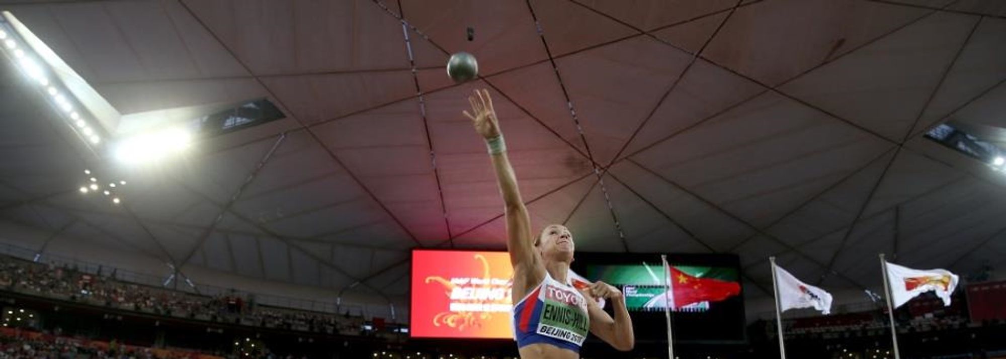 Jessica Ennis-Hill in the heptathlon shot put at the IAAF World Championships, Beijing 2015 (© Getty Images)