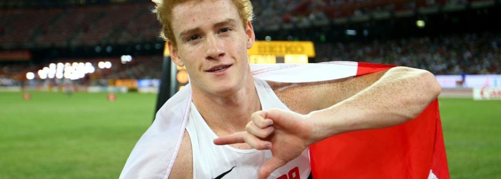 Shawn Barber after winning the pole vault at the IAAF World Championships, Beijing 2015 (© Getty Images)