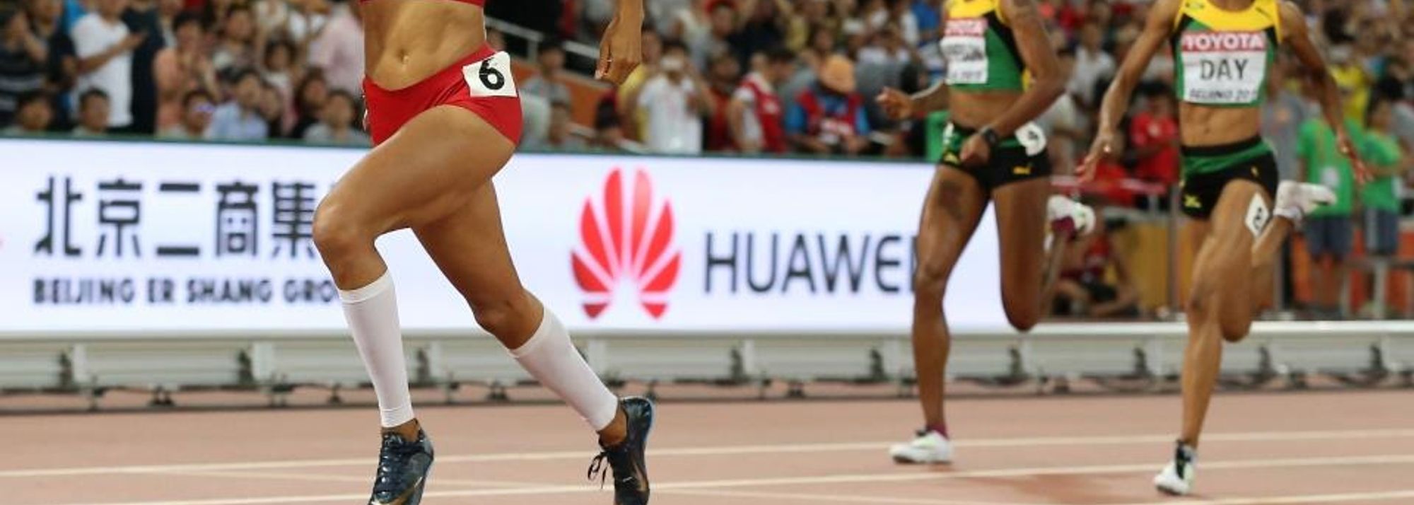 Allyson Felix on her way to winning the 400m at the IAAF World Championships, Beijing 2015 (© Getty Images)