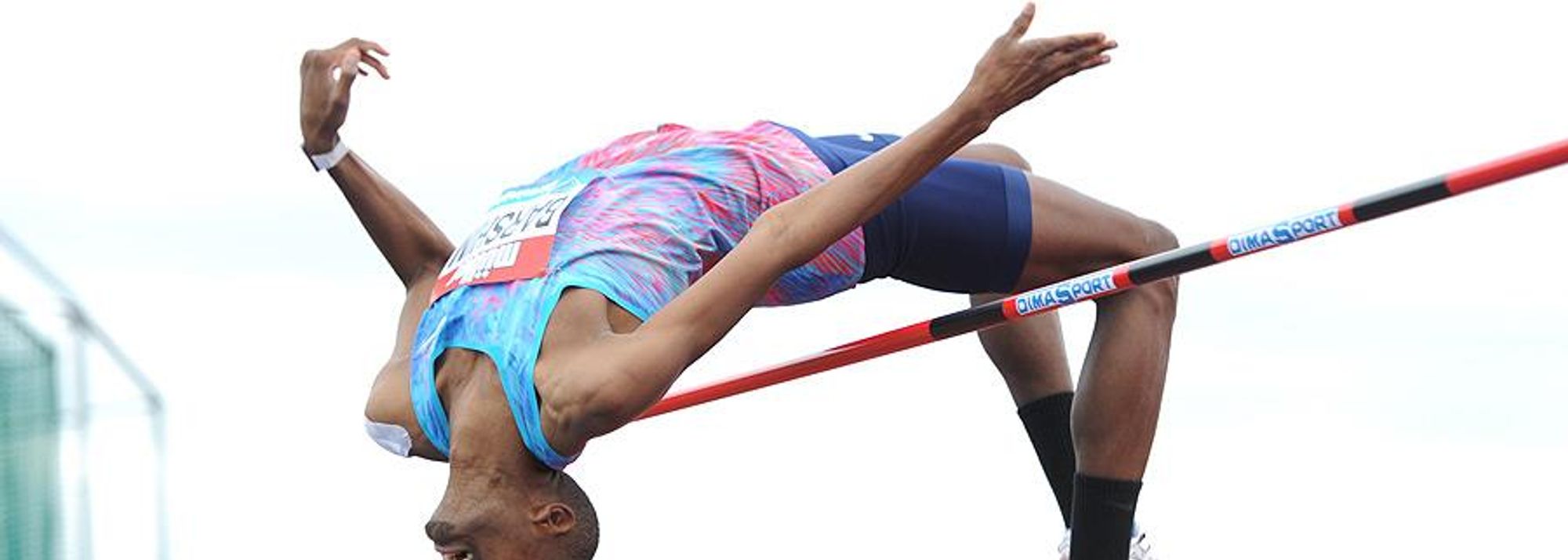 Mutaz Essa Barshim in the high jump at the IAAF Diamond League meeting in Birmingham (© Mark Shearman)