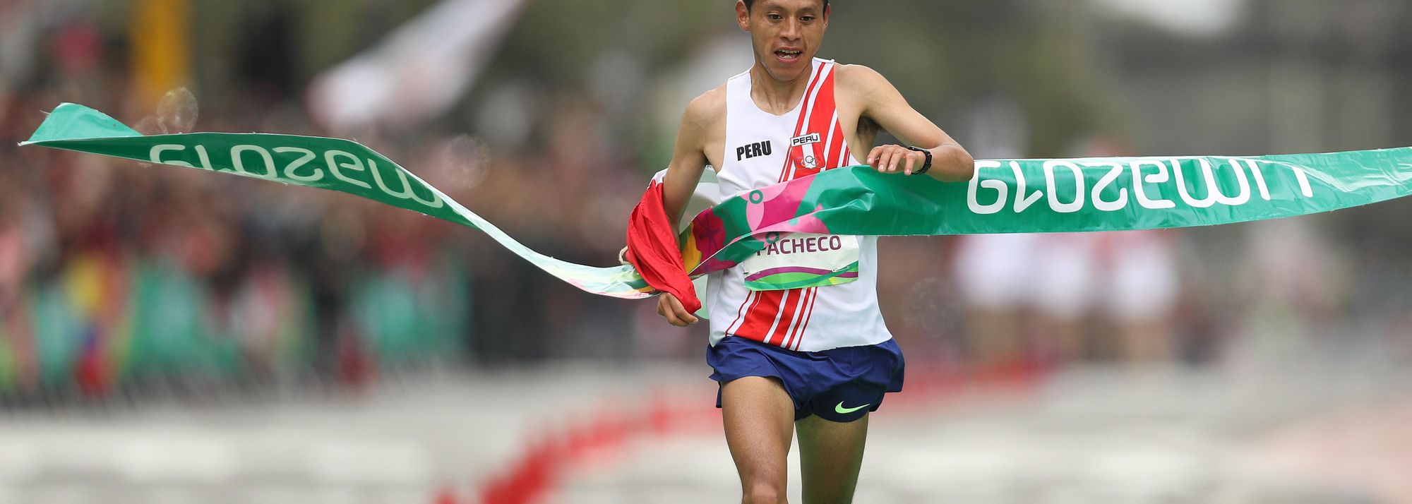 Christian Pacheco of Peru winning the Pan American Games marathon title in Lima (© Getty Images)