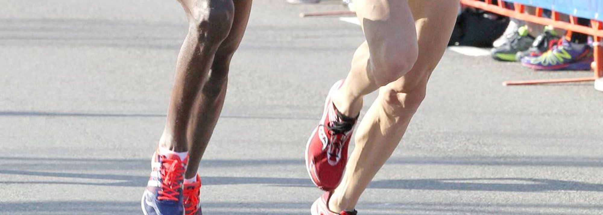 Dejen Gebremeskel out-sprints Ben True to take the 5km win in Boston (© Victah Sailer)