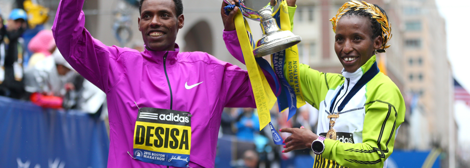 Lelisa Desisa and Caroline Rotich, winners of the 2015 Boston Marathon (© Getty Images)