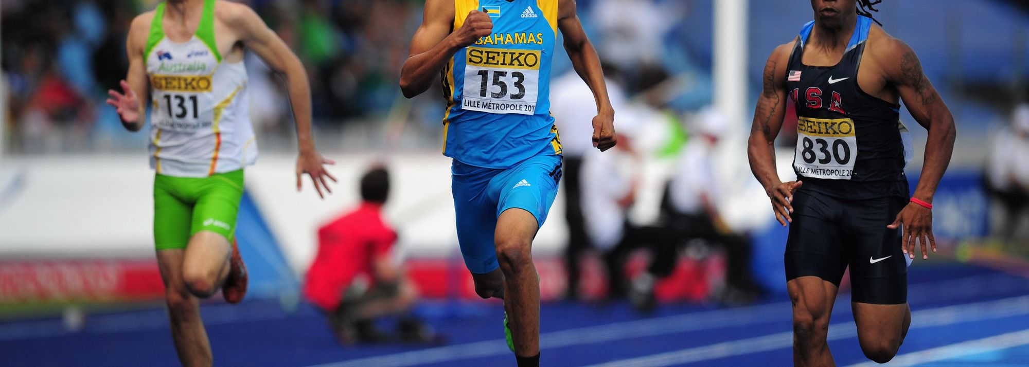 Stephen Newbold strikes 200m gold for The Bahamas (© Getty Images)
