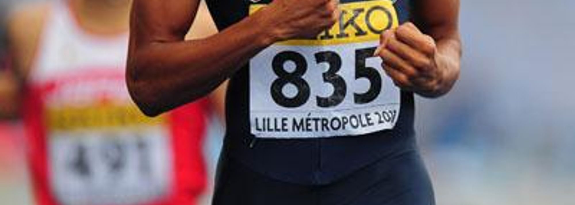 Gold medal winner Arman Hall of USA celebrates after winning the boys 400m - day three, WYC Lille 2011 (© Getty Images)