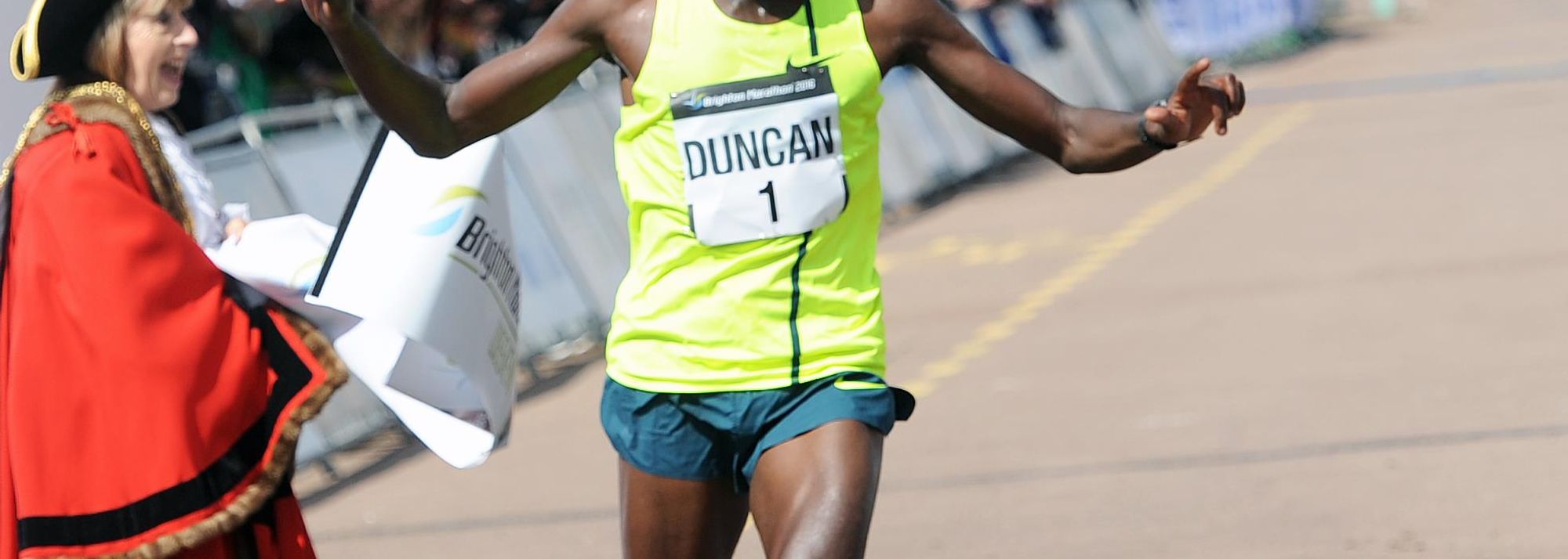 Duncan Maiyo winning the 2016 Brighton Marathon (© Mark Shearmon / organisers)