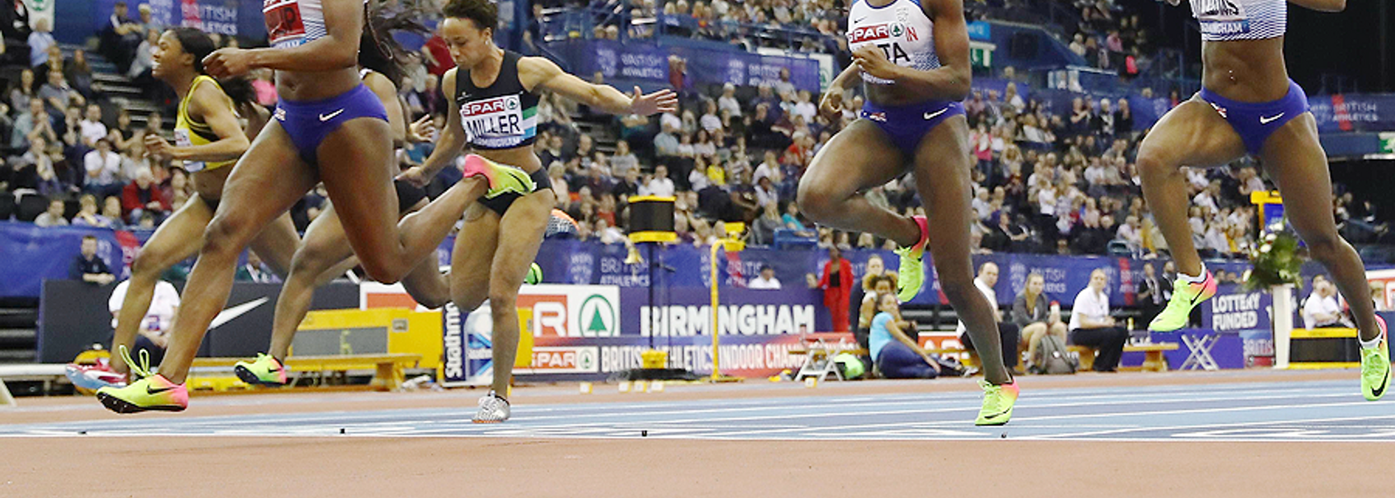 Asha Philip wins the 60m at the British Indoor Championships in Birmingham (© Getty Images)