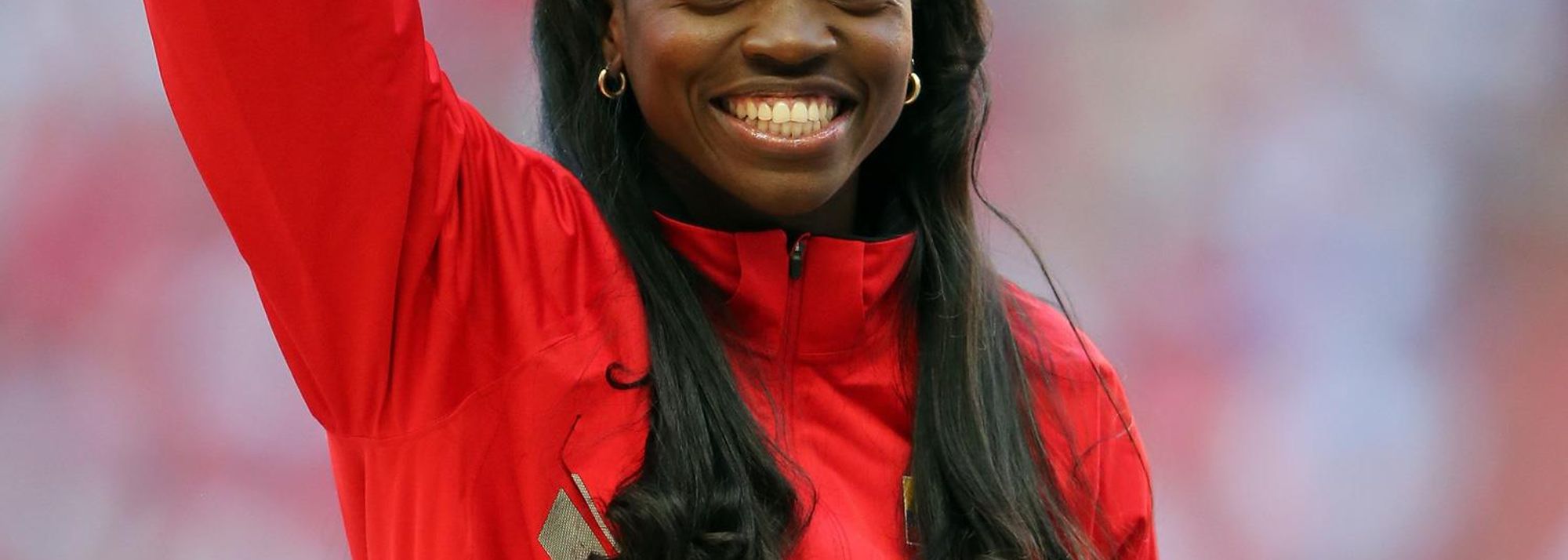 Colombian triple jumper Caterine Ibarguen on top of the podium (© Getty Images)