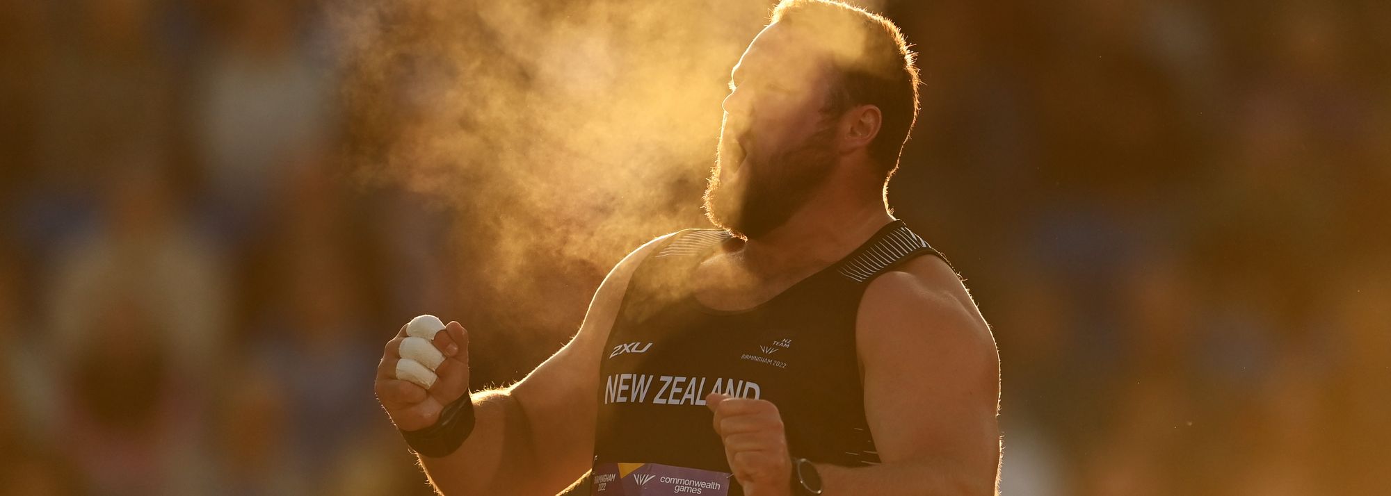 Tom Walsh wins the shot put at the Commonwealth Games in Birmingham (© Getty Images)