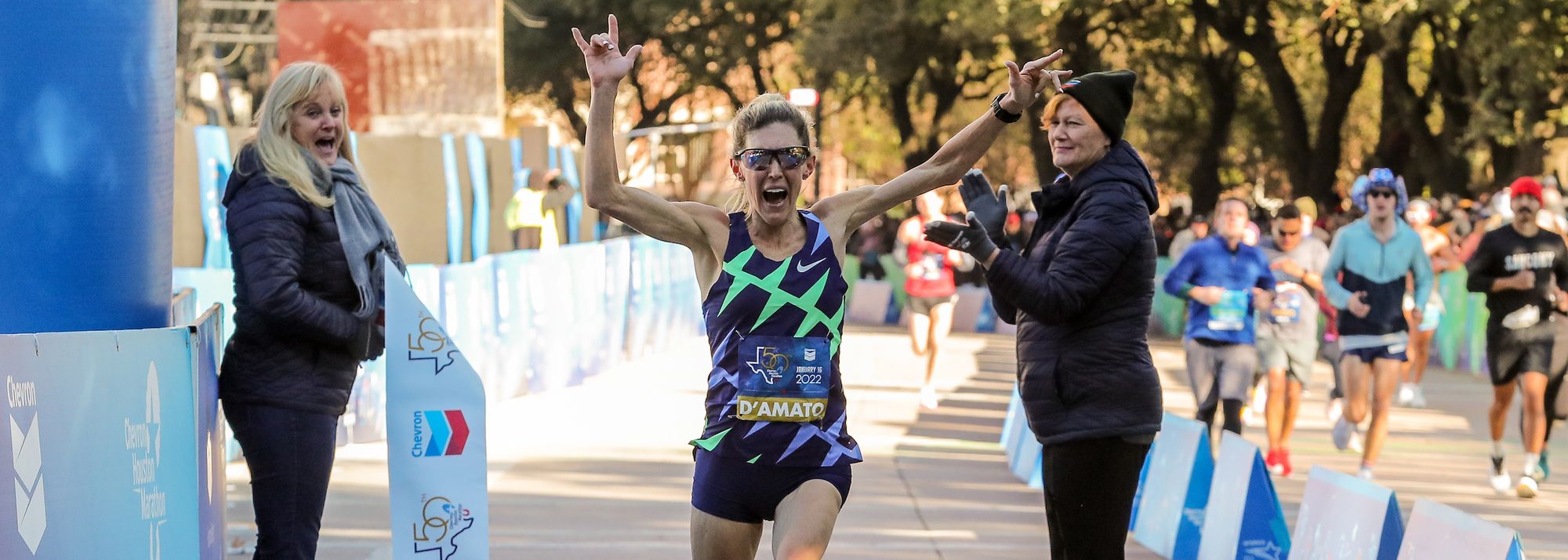 At the 50th Chevron Houston Marathon and Aramco Houston Half Marathon – both World Athletics Elite Label events – D'Amato became the first US woman to win the Houston Marathon since 2005 and she did so in a national record time of 2:19:12. That followed the record-breaking performances achieved by Chepngeno and Hall in the half marathon, as they clocked respective times of 1:05:03 and 1:07:15.