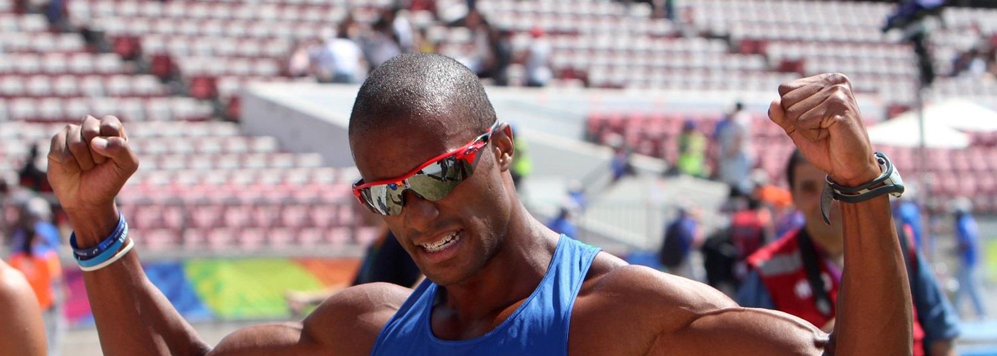 A jubilant Anderson Henriques after winning the 400m at the 2014 ODESUR Games (© Oscar Muñoz Badilla)