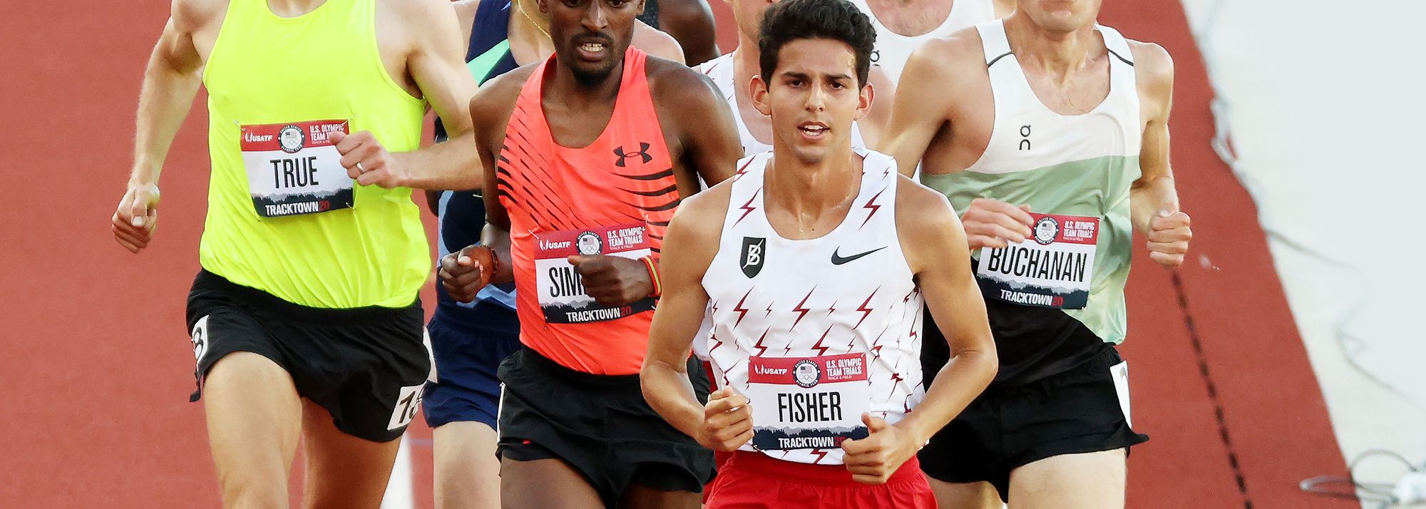 After reaching 3000m in 7:53.51 with Britain’s Sam Atkin leading the pack, the pace started to increase; the 32-second laps became 31-second laps, then progressed to 30 and even quicker. With the fourth kilometre covered in 2:31.76, Atkin drifted off the pace, leaving Fisher, Ahmed, Emmanuel Bor and Scott at the front of the lead group.