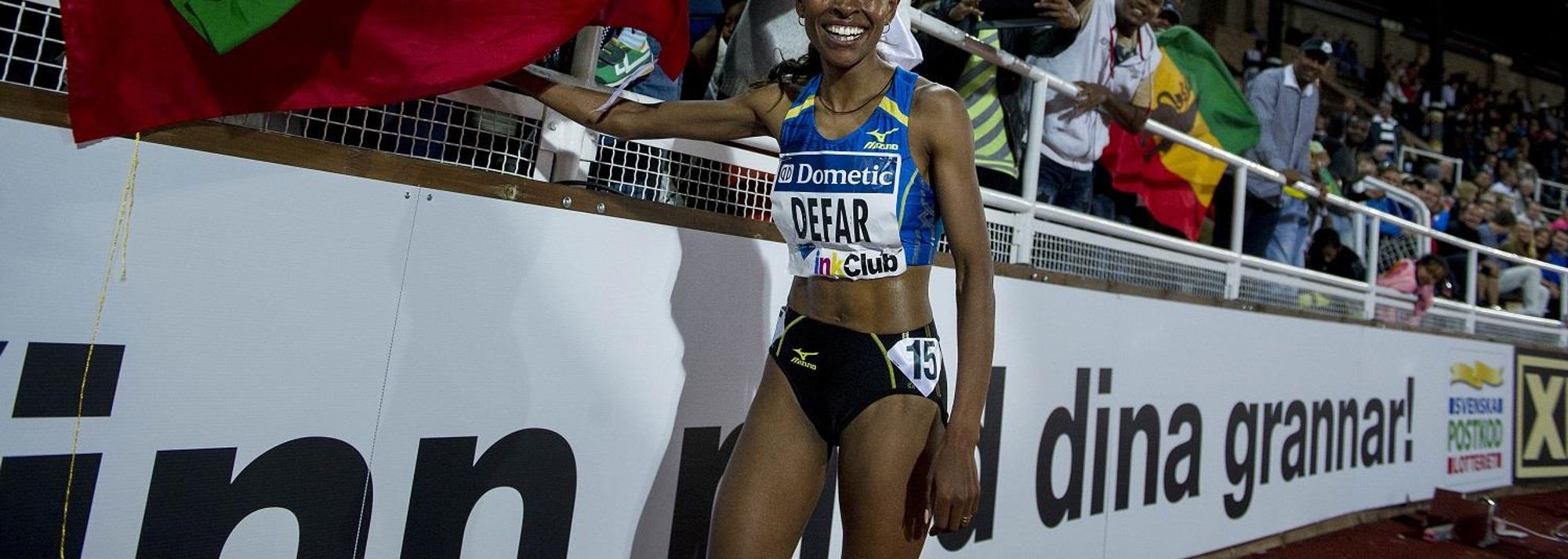 Meseret Defar after winning at the 2013 IAAF Diamond League in Stockholm (© Anders and Hasse Sjogren)