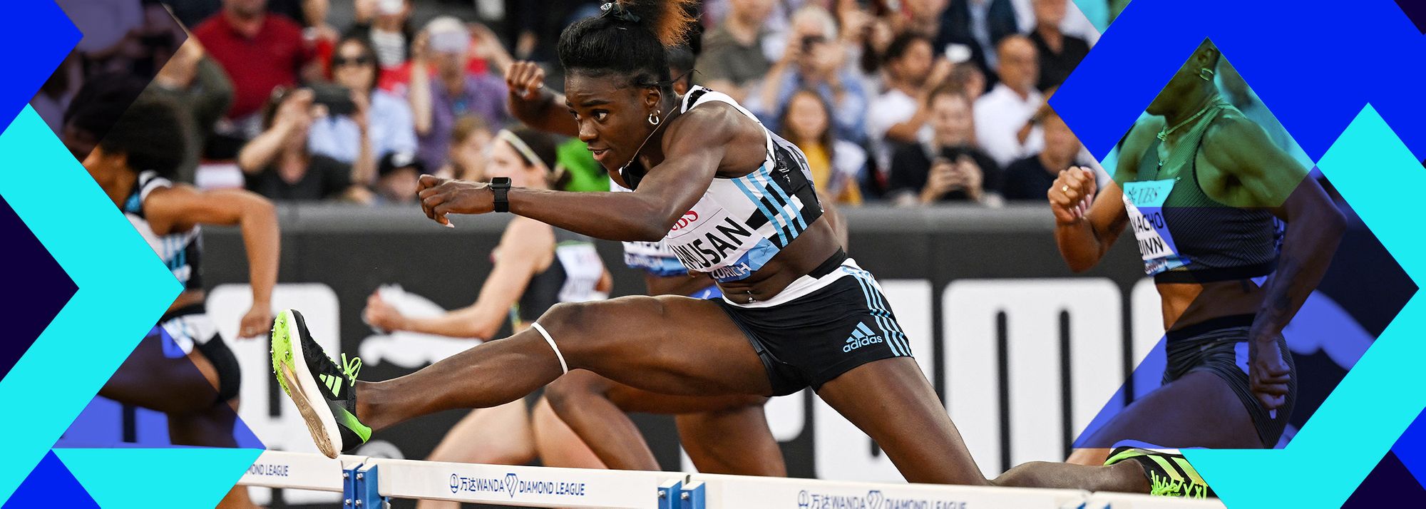 400m hurdles winner Alison Dos Santos at the Wanda Diamond League Final in Zurich (© Getty Images)