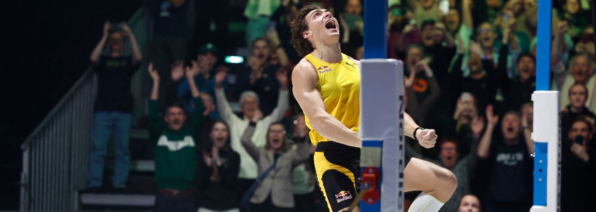Mondo Duplantis celebrates his world record in Uppsala (© AFP / Getty Images)