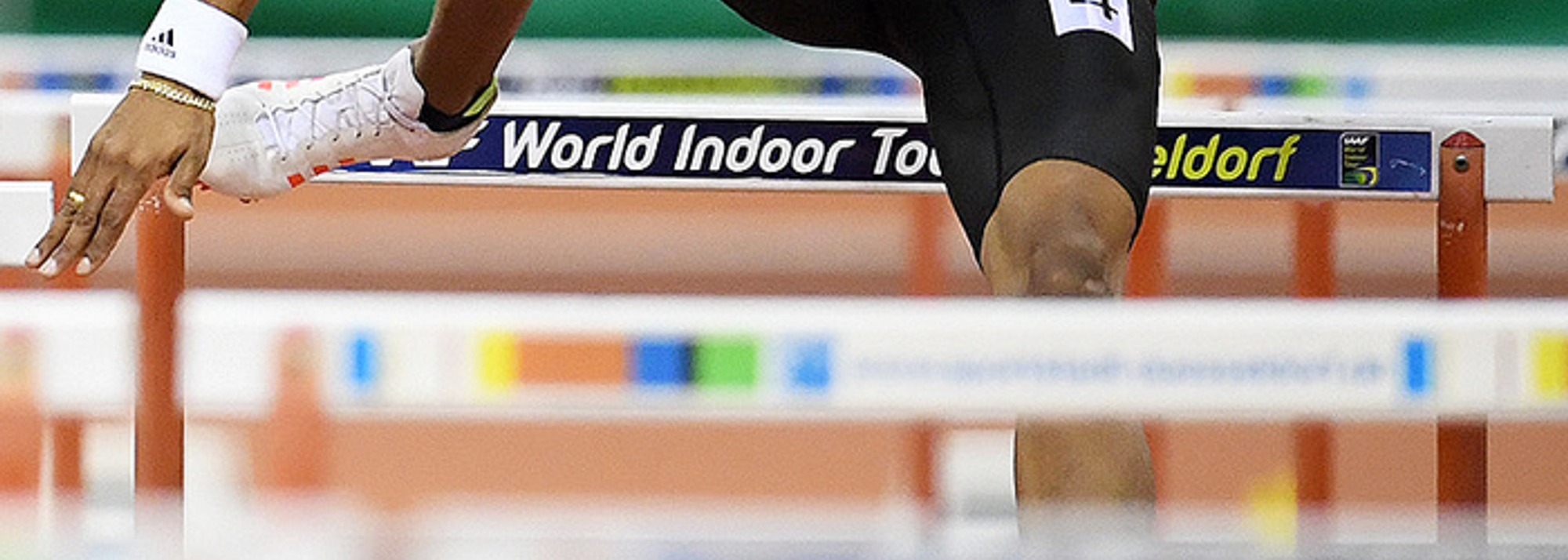 Orlando Ortega on his way to winning the 60m hurdles at the IAAF World Indoor Tour Meeting in Dusseldorf (© Gladys Chai von der Laage)