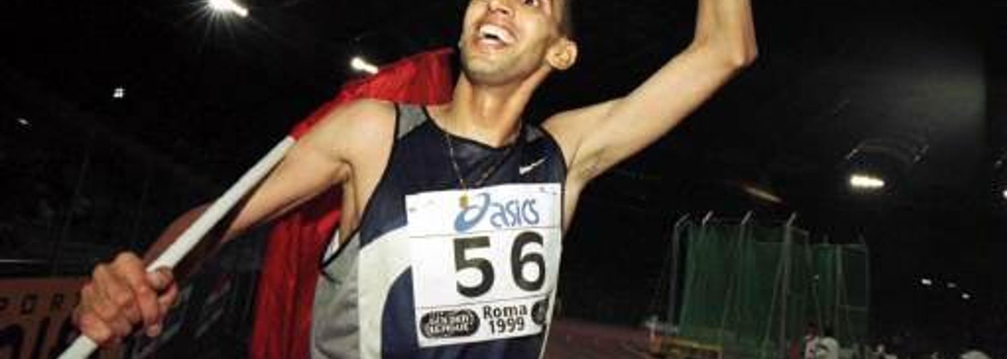 Hicham El Guerrouj happy after his world record mile in Rome (© © Allsport)