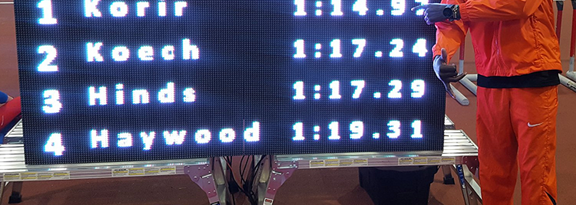 The Kenyan, who is a student at the University of Texas at El Paso, took the lead just before the bell sounded for the final lap and opened up a significant gap on his rivals before crossing the finish line in 1:14.97.