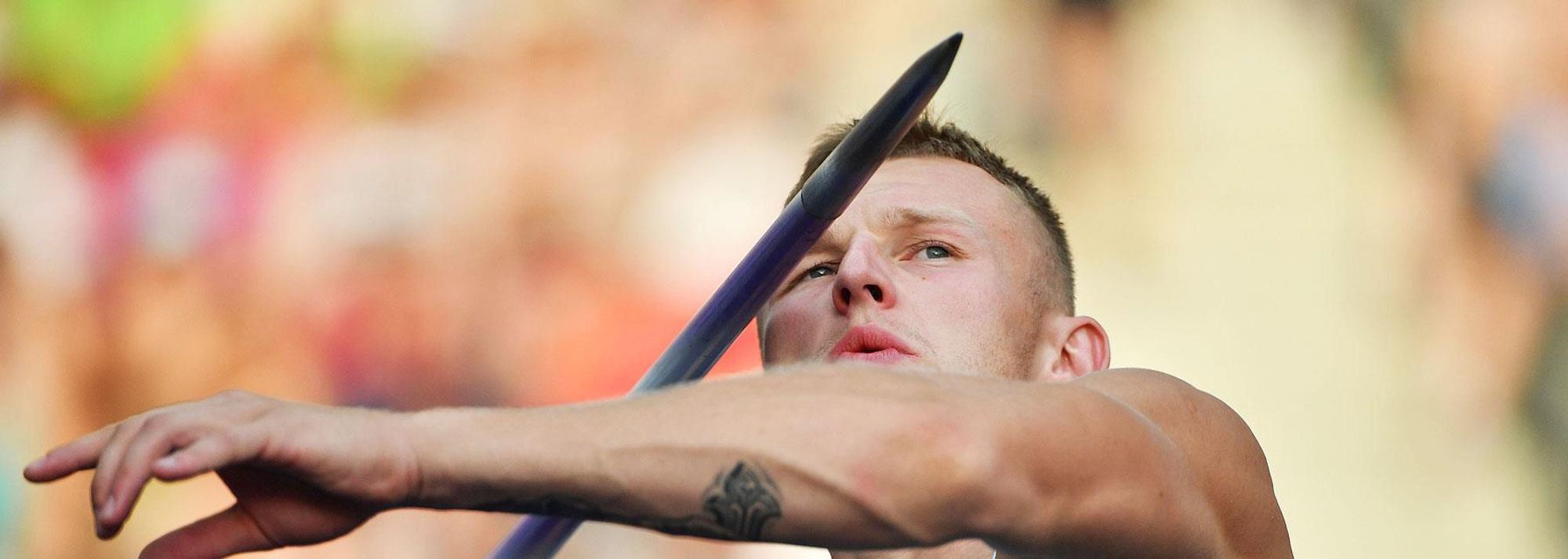 Vitali Zhuk of Belarus in the decathlon javelin (© AFP / Getty Images)