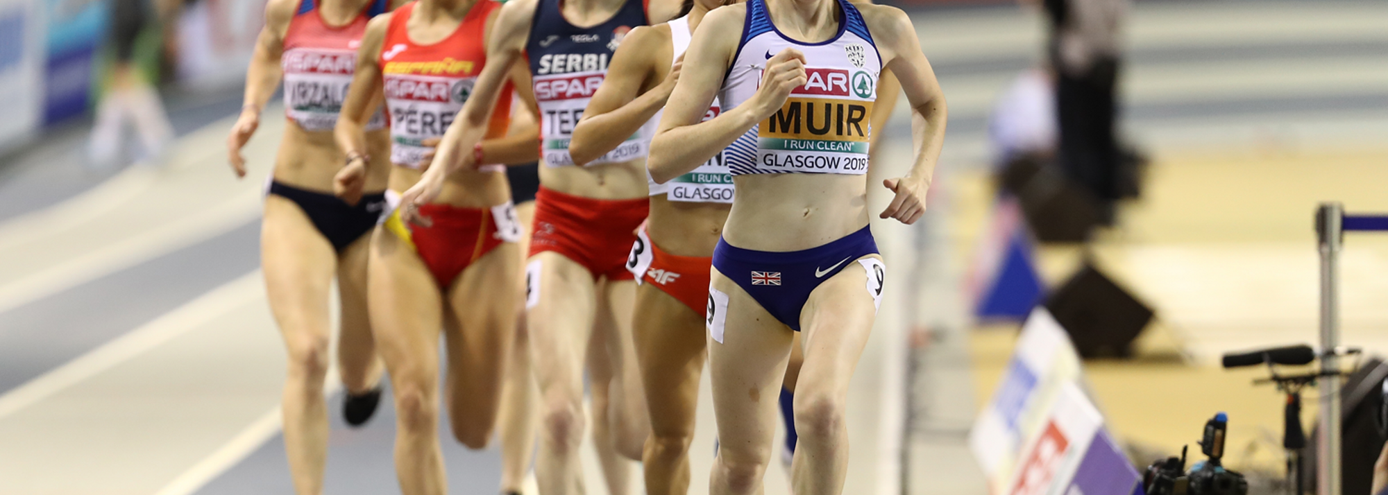 With a magnificent front-running performance – sealing a historic double-double at 1500m and 3000m – Scottish heroine Laura Muir (1500m world rank: 1) electrified the home crowd in Glasgow to provide a fitting climax to the European Indoor Championships on Sunday night (3).