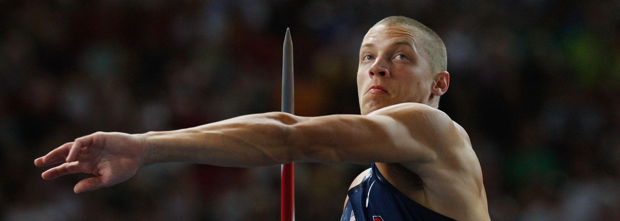 Eventual Decathlon winner Trey Hardee of the United States throws three personal bests in the men's Decathlon Javelin Throw in the Berlin Olympic Stadium (© Getty Images)