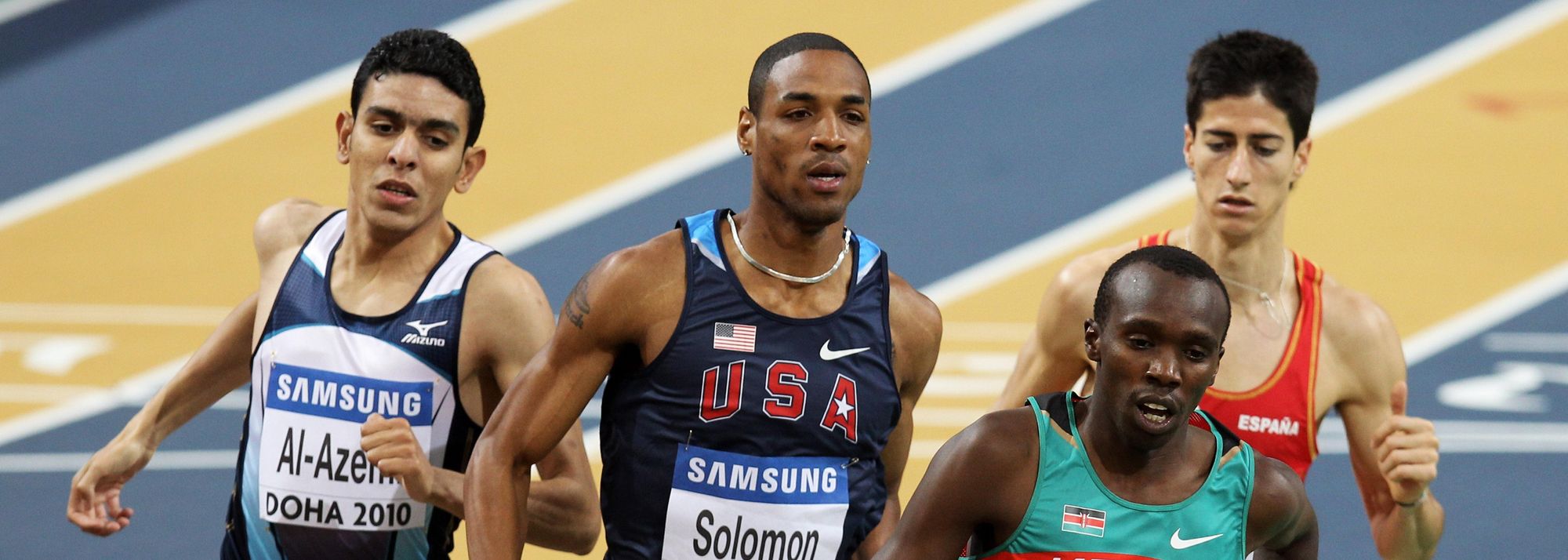 USA's Duane Solomon and Kenya's Boaz Lalang compete in the men's 800m heats in Doha (© Getty Images)