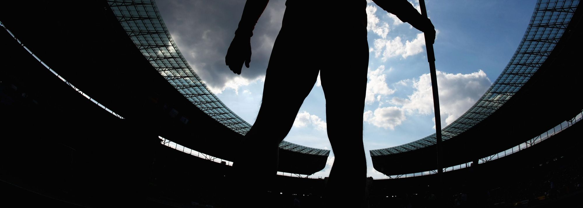 An athlete competes in the men's Javelin Throw final in the Berlin Olympic Stadium (© Getty Images)