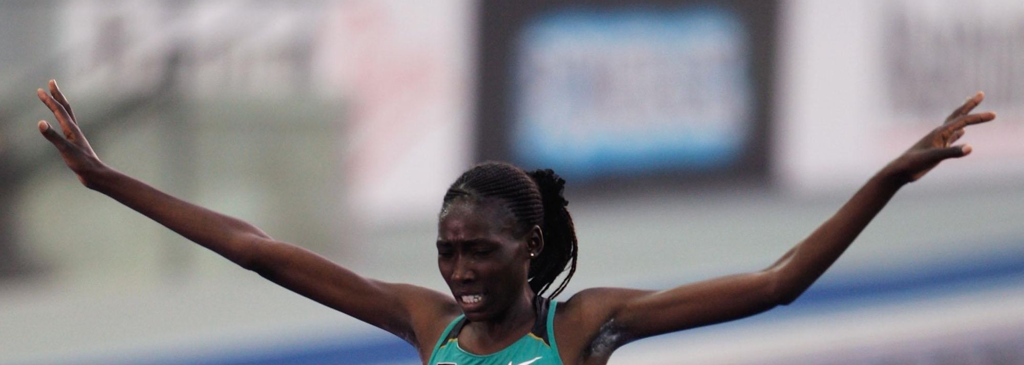 Kenya's Linet Chepkwemoi Masai crosses the line to end the 12 year Ethiopian domiance of the women's 10,000m (© Getty Images)