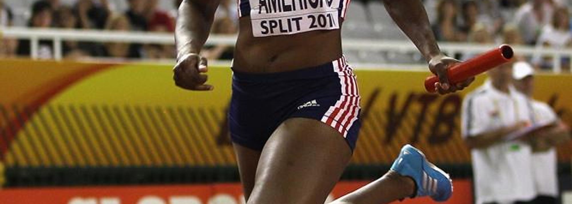 Kelly-Ann Baptiste anchors Team America to the 4x100m Relay IAAF / VTB Bank Continental Cup title in Split (© Getty Images)