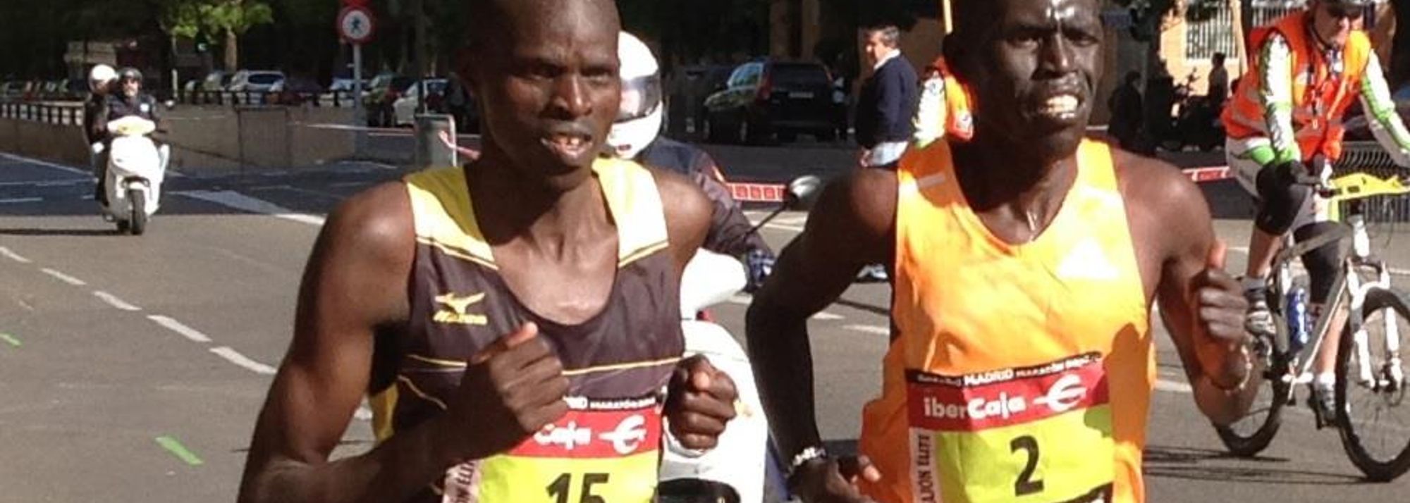 Ezekiel Kiptoo Chebii and Lawrence Kimaiyo in the 2014 Rock’n’Roll Madrid Marathon (© Emeterio Valiente)