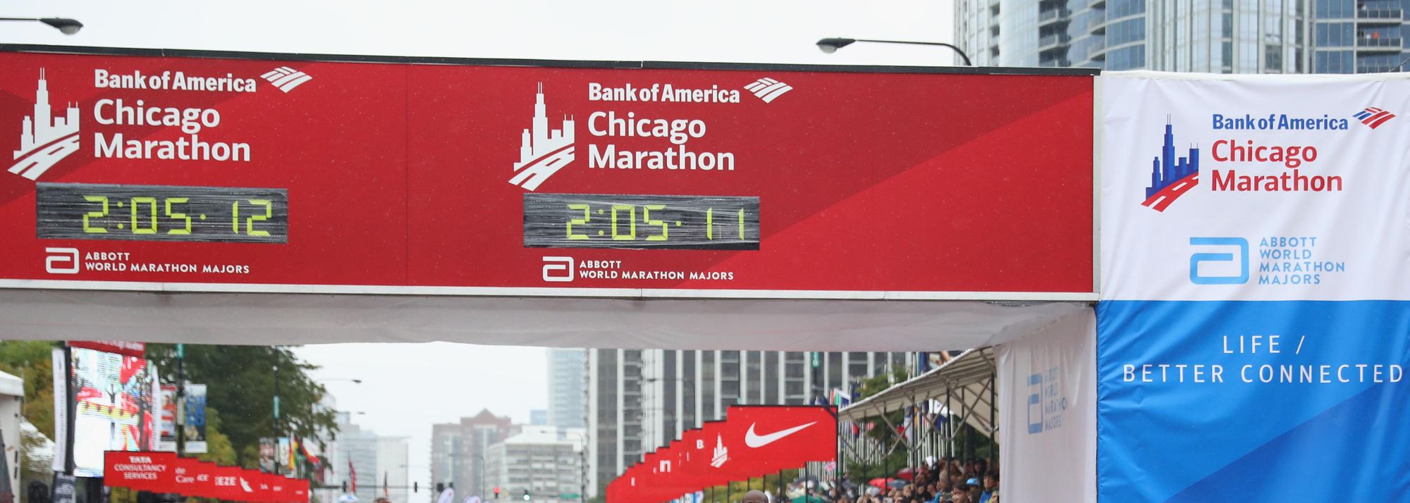 Mo Farah winning the Chicago Marathon (© Getty Images)