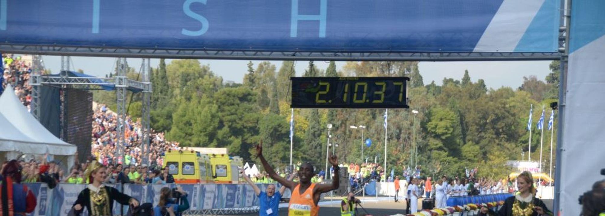 Ten years after Stefano Baldini won the gold medal in the 2004 Olympic Games, the Athens Marathon course record of the Italian was finally broken with the unheralded Kenyan Felix Kandie clocking 2:10:37 on Sunday (9).