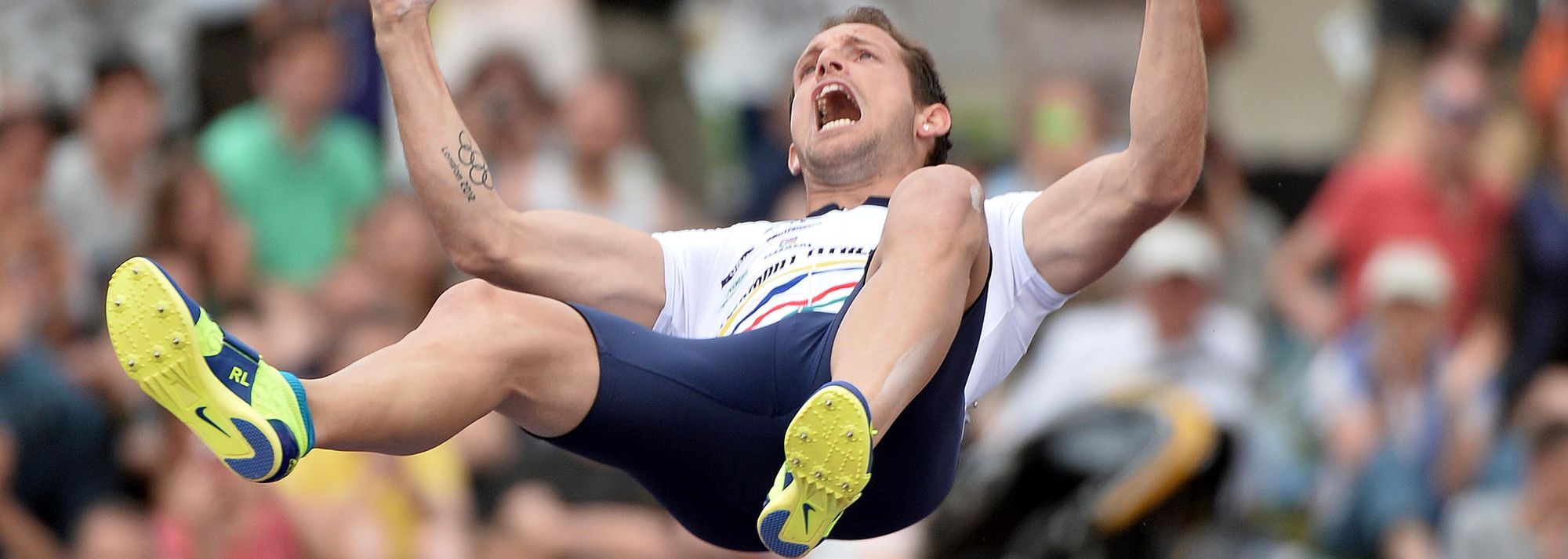 Renaud Lavillenie after clearing 5.95m at the 2016 French Championships (© Getty Images / AFP)