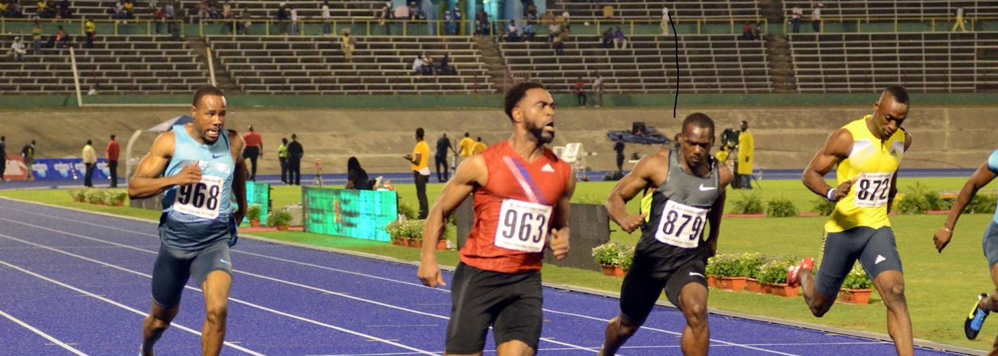 Tyson Gay (963) wins at the 2013 Jamaica International Invitational meeting in Kingston (© Anthony Foster)