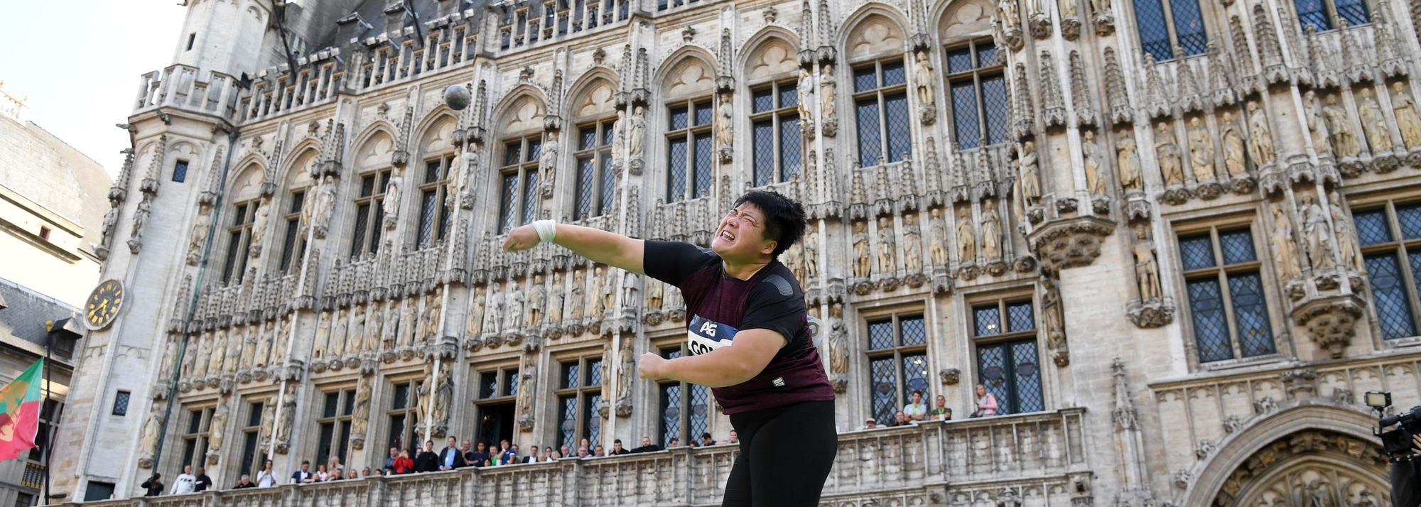 Lijiao Gong winning the Diamond League shot put title in Brussels (© Gladys Chai von der Laage)