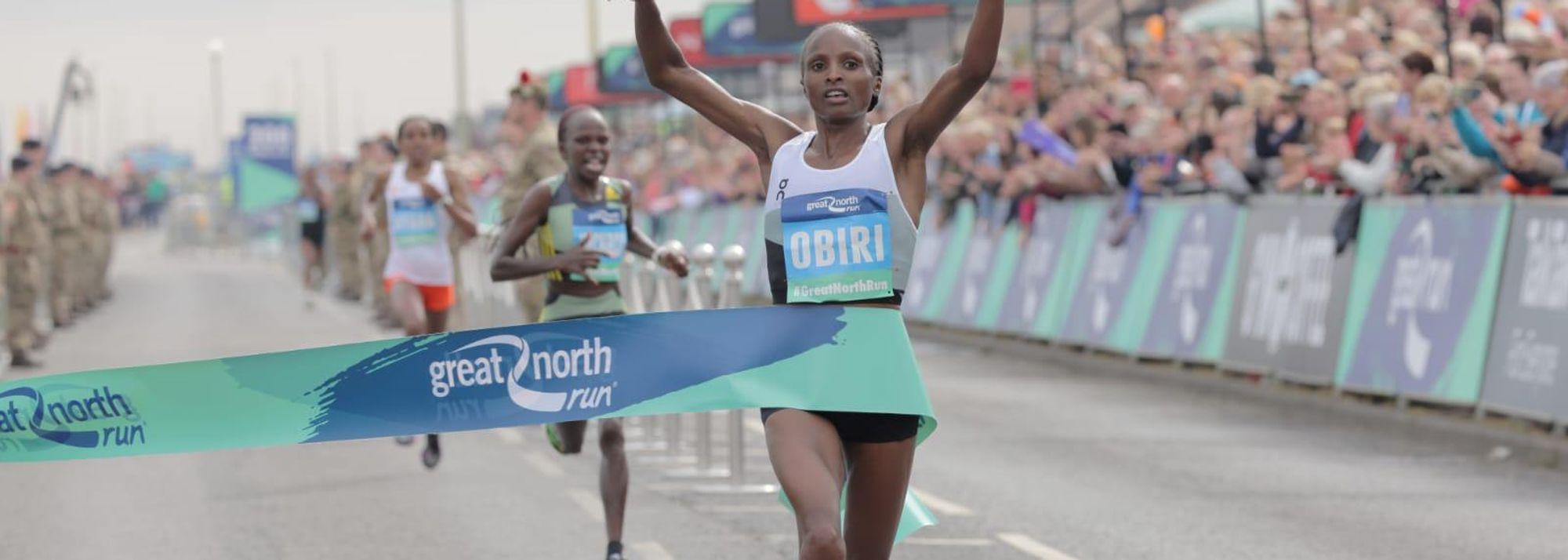 Brilliant wins by Hellen Obiri and Jacob Kiplimo shone through a necessarily subdued day at the Great North Run half marathon from Newcastle to South Shields on Sunday (11).