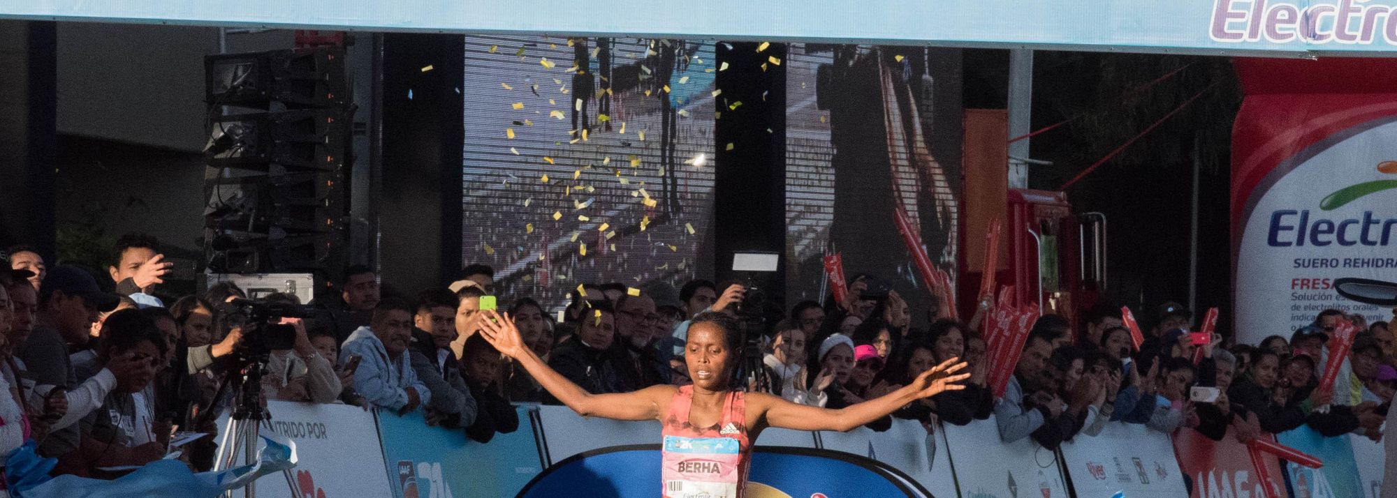 Afera Godfay Berha of Ethiopia broke the women’s Mexican all-comers half marathon record at the 33rd Electrolit Guadalajara Half Marathon, an IAAF Gold Label road race, on Sunday (24).