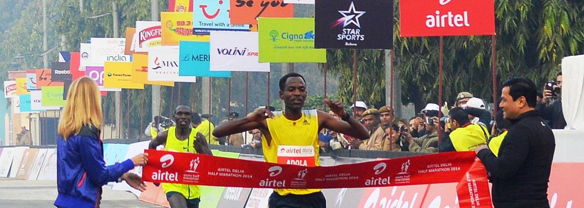 Guye Adola winning the airtel Delhi Half Marathon (© Organisers)
