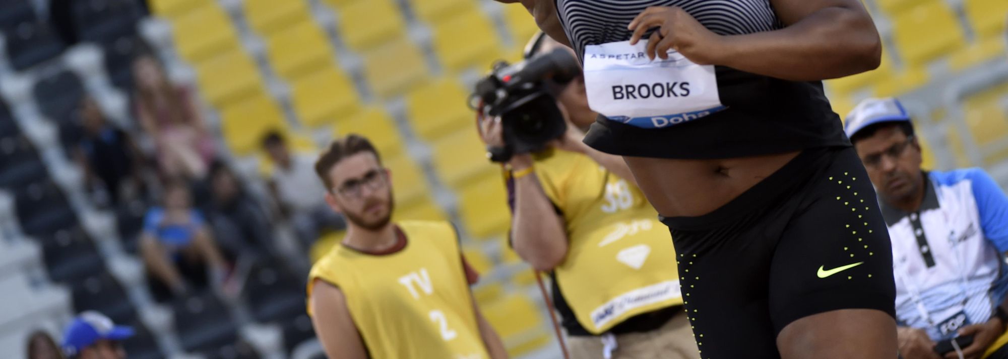 Tia Brooks twice improved on her personal best to win the shot put at the IAAF Diamond League meeting in Doha with 19.48m and become the first winner of a Diamond Race discipline in 2016 after she managed an upset victory on Friday (6).