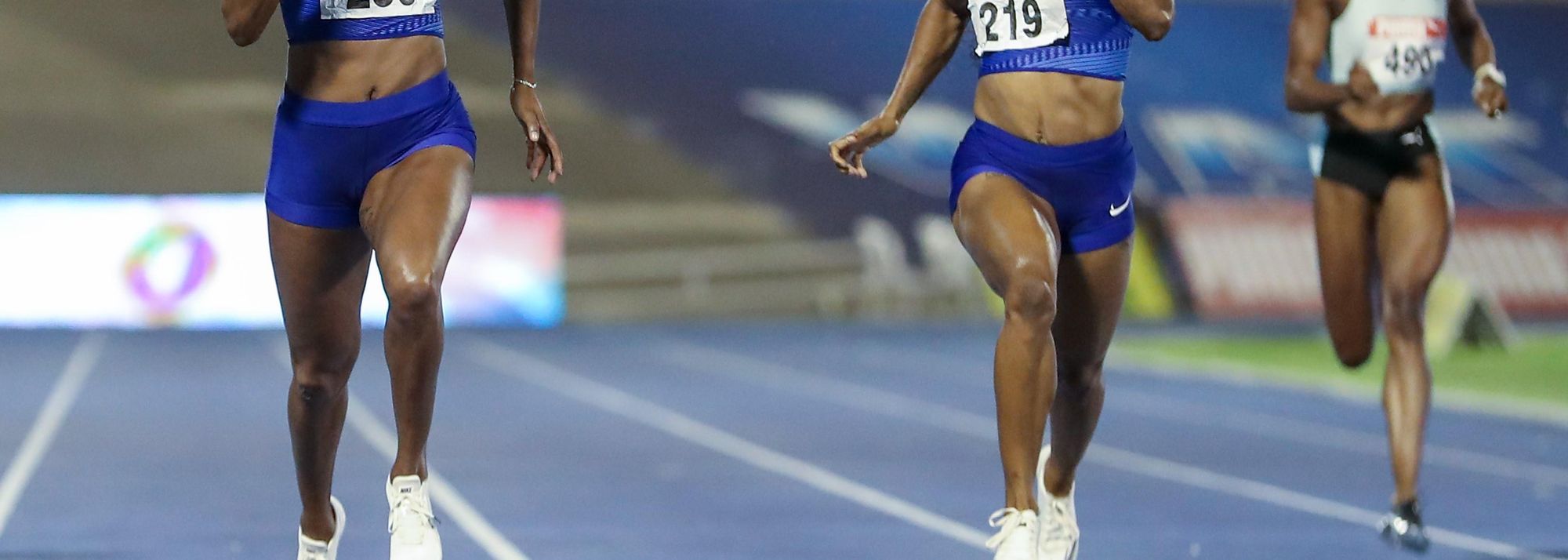 Elaine Thompson beats Shelly-Ann Fraser-Pryce in the 200m at the Jamaican Championships (© Athelstan Bellamy)