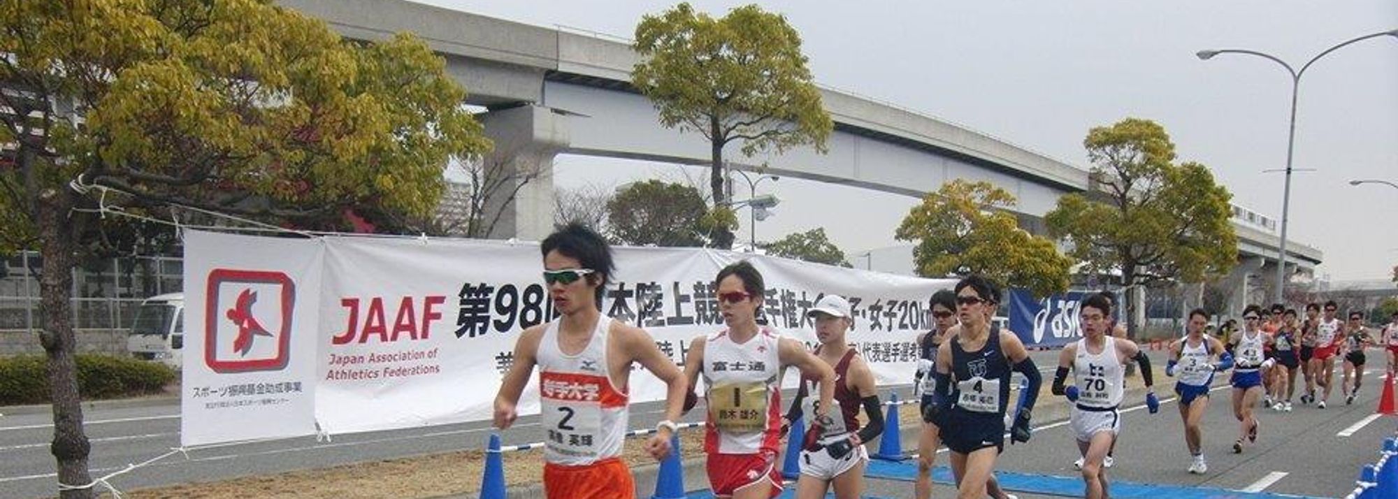 Eiki Takahashi leads the 20km at the Japanese Race Walking Championships (© JAAF)