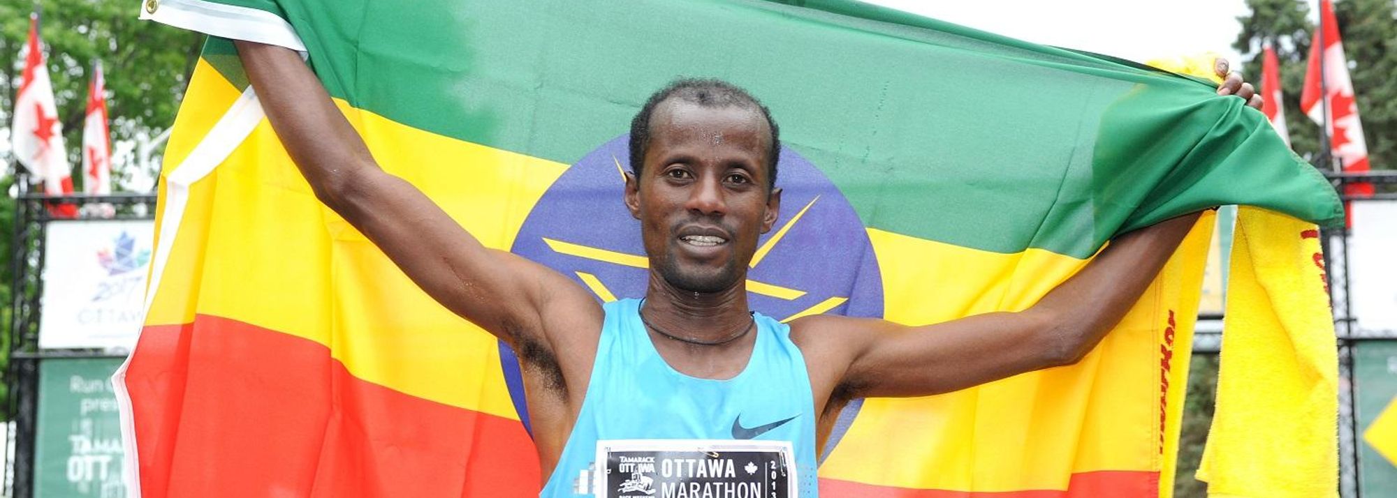 Tariku Jufar after winning the 2013 Ottawa Marathon (© Victah Sailer - organisers)