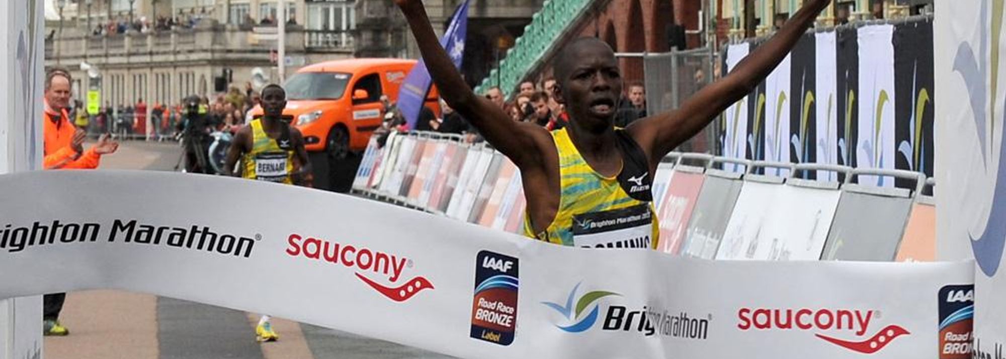 Dominic Kangor smashes his PB and the course record to win the 2013 Brighton Marathon (© Organisers)