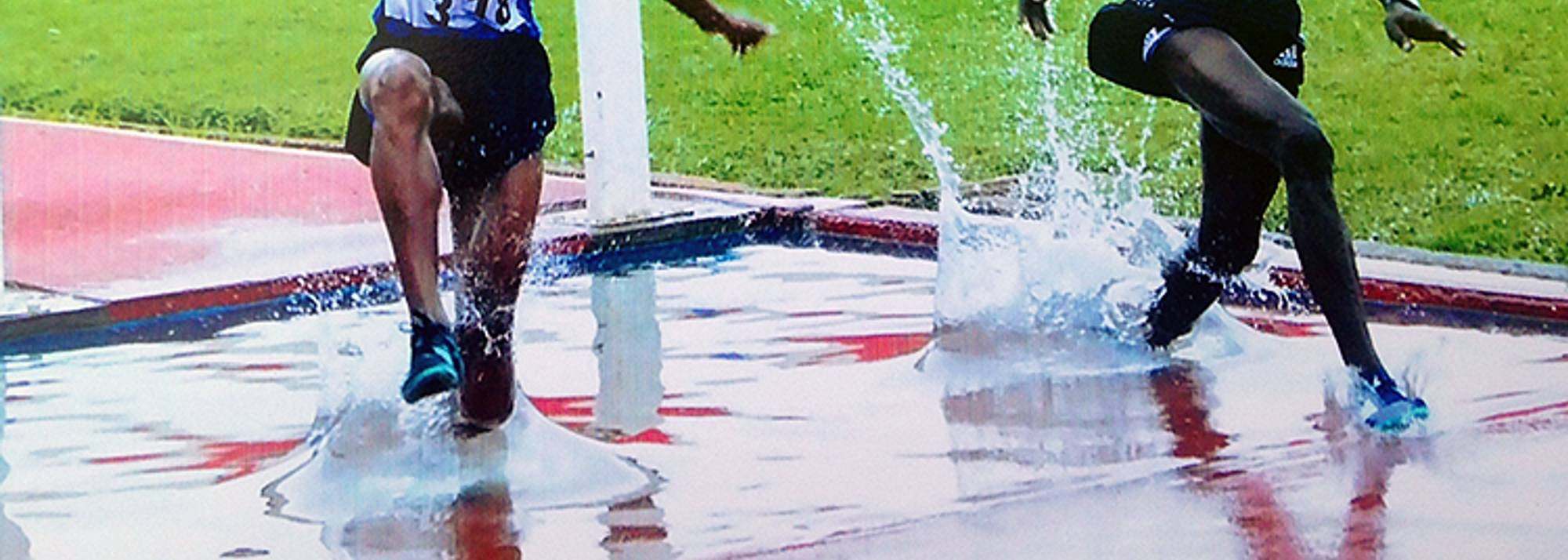 Vincent Kipyegon (right) on his way to winning the steeplechase at the Kenyan Junior Championships (© Kip Evans)