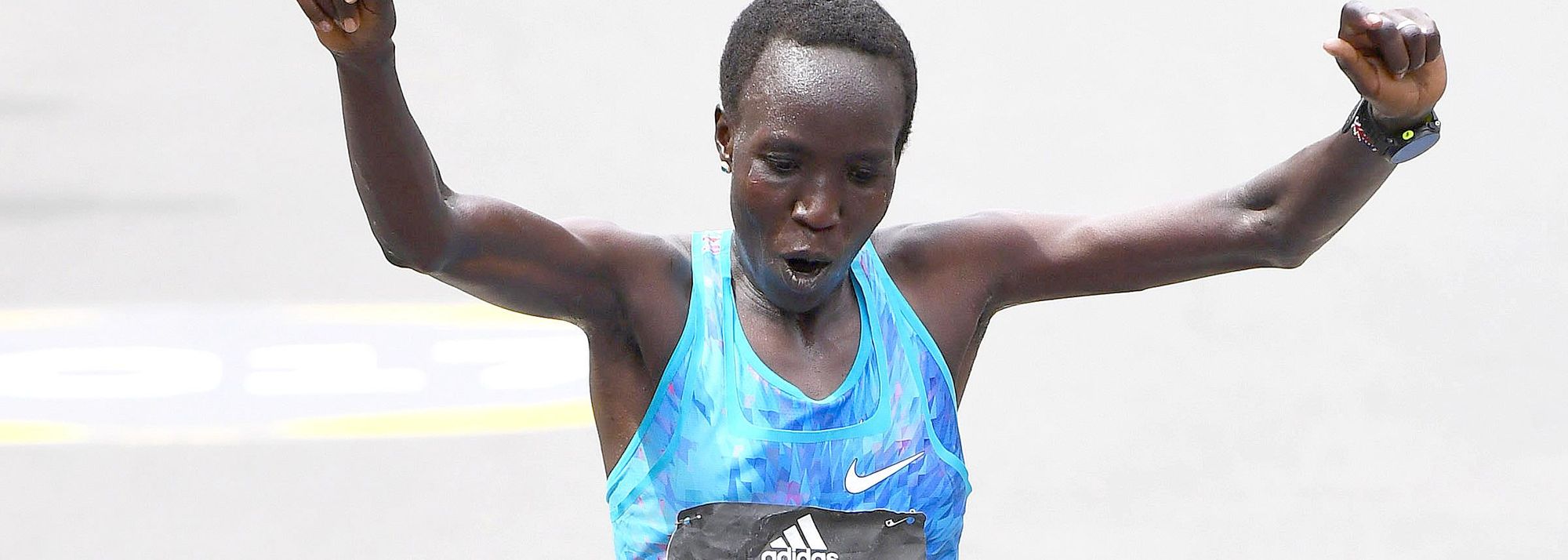 Edna Kiplagat triumphant in Boston (© Victah Sailer)
