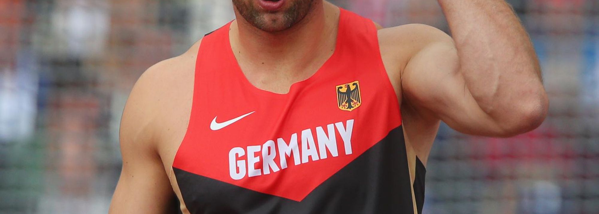 Robert Harting of Germany reacts as he competes in the Men's Discus Throw qualification on Day 10 of the London 2012 Olympic Games at the Olympic Stadium on August 6 2012 (© Getty Images)