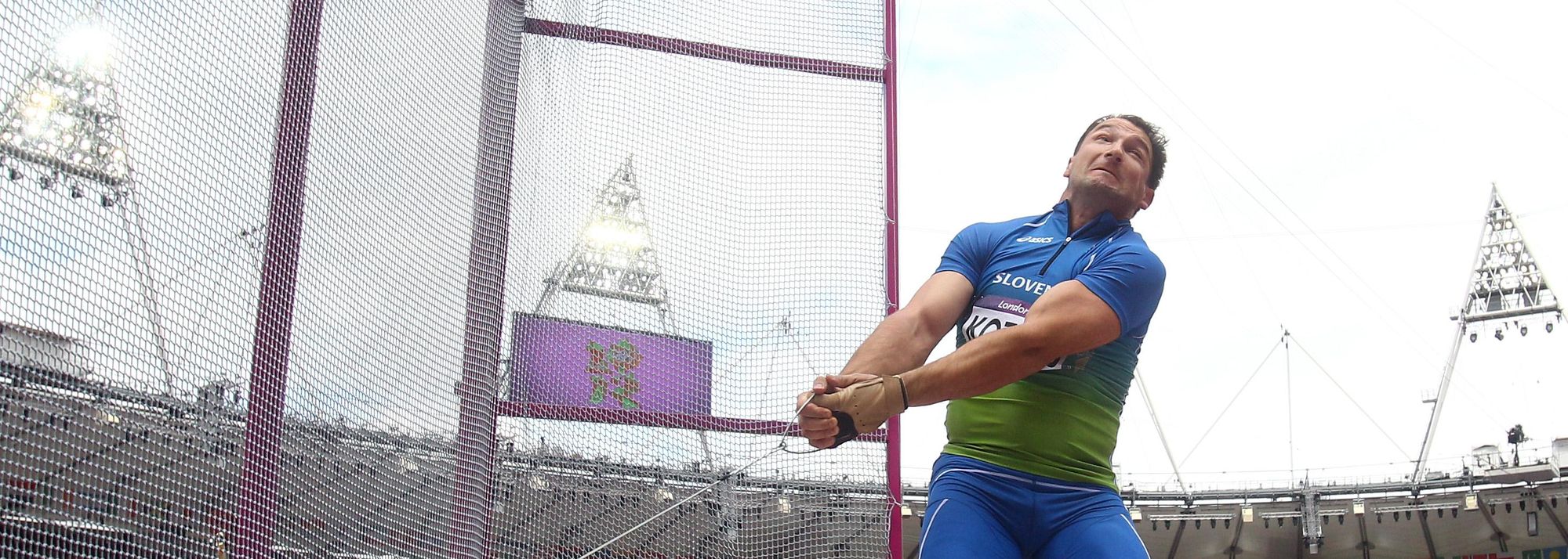 Primoz Kozmus of Slovenia in action during the Men's Hammer Throw qualification on Day 7 of the London 2012 Olympic Games at Olympic Stadium on August 3, 2012 (© Getty Images)
