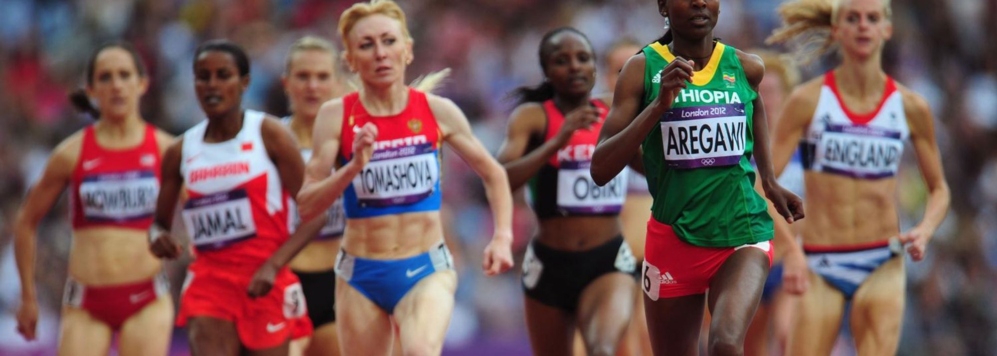 Abeba Aregawi of Ethiopia and Tatyana Tomashova of Russia competes in the Women's 1500m heat on Day 10 of the London 2012 Olympic Games on 06 August 2012 (© Getty Images)
