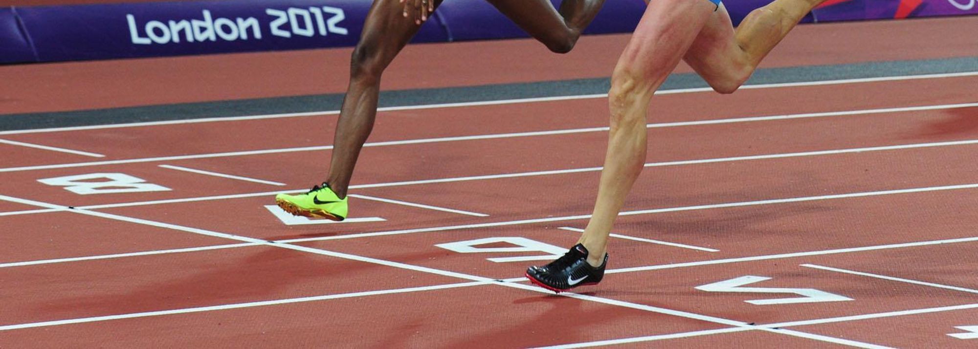 Natalya Antyukh of Russia crosses the finish line ahead of Lashinda Demus of the United States in the Women's 400m Hurdles Final on Day 12 of the London 2012 Olympic Games on 8 August 2012 (© Getty Images)