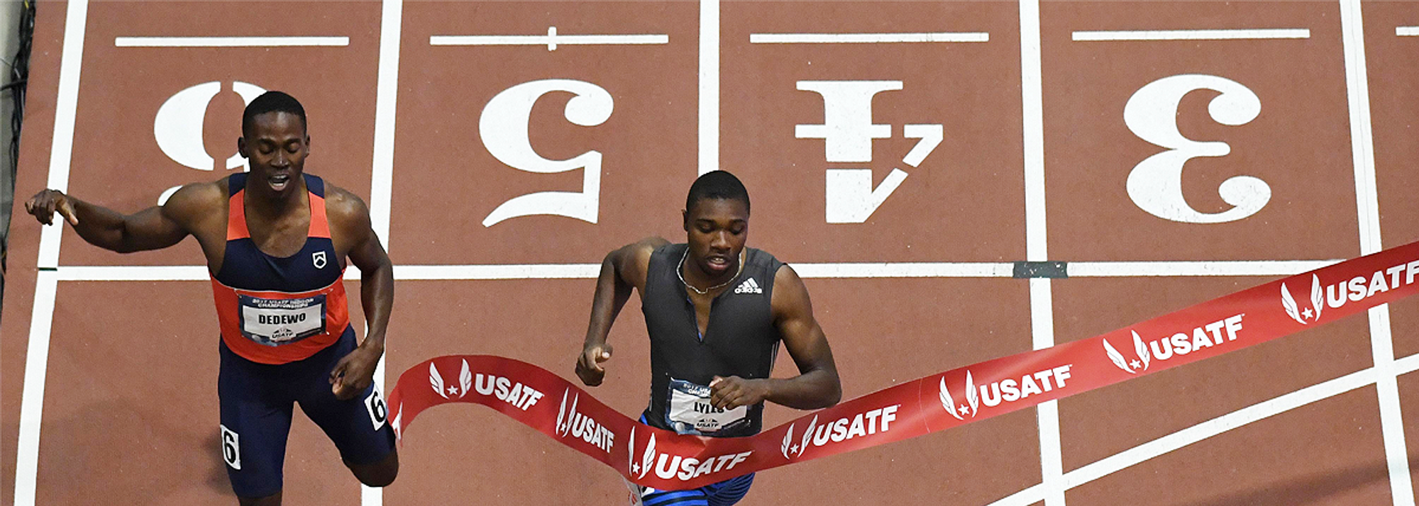 Just 19, Lyles is in his first season as a professional. A 33.18 sprinter over the lap-and-a-half last winter, Lyles improved his best to 32.67 in late January and then set a meeting record of 32.16 in winning his heat on the Albuquerque Convention Center oval.